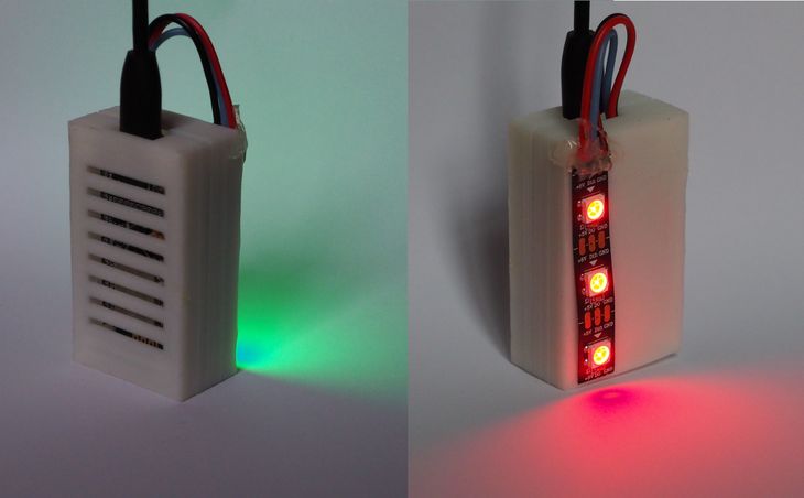 My parents love to run into my room and start talking (mostly for telling me that or when warm food is available so it's for a good cause). Due to the current COVID situation I have a lot of meetings or online lectures. So this situation can get embarassing when I'm not muted. The goal of this project was to indicate whether I'm in a meeting or not.